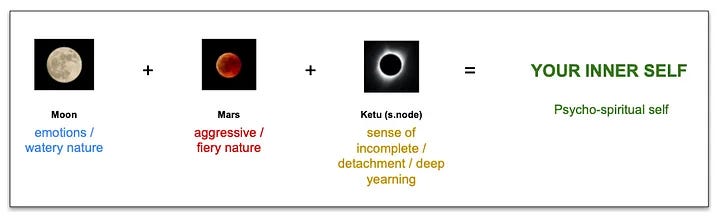 But…here’s the caveat! Where your moon is, there is where your deep emotional entanglements lie. Putting this together, if we are to imagine a formula, we get something like this: