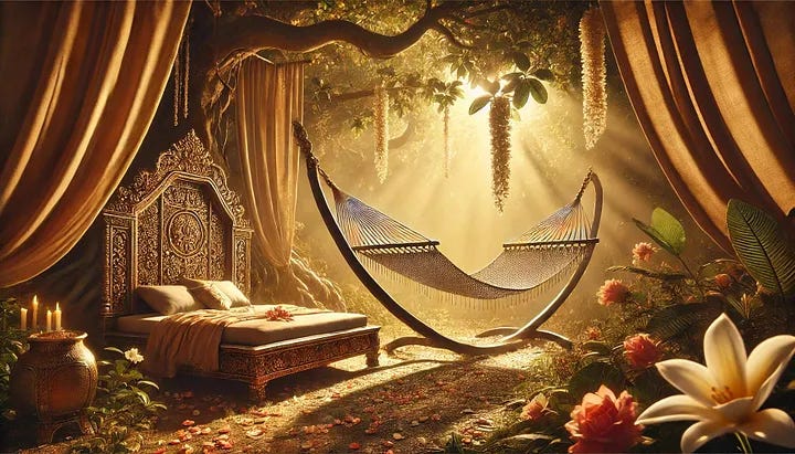 Symbolized by a hammock or bed — signifying relaxation, union, and sensuality.