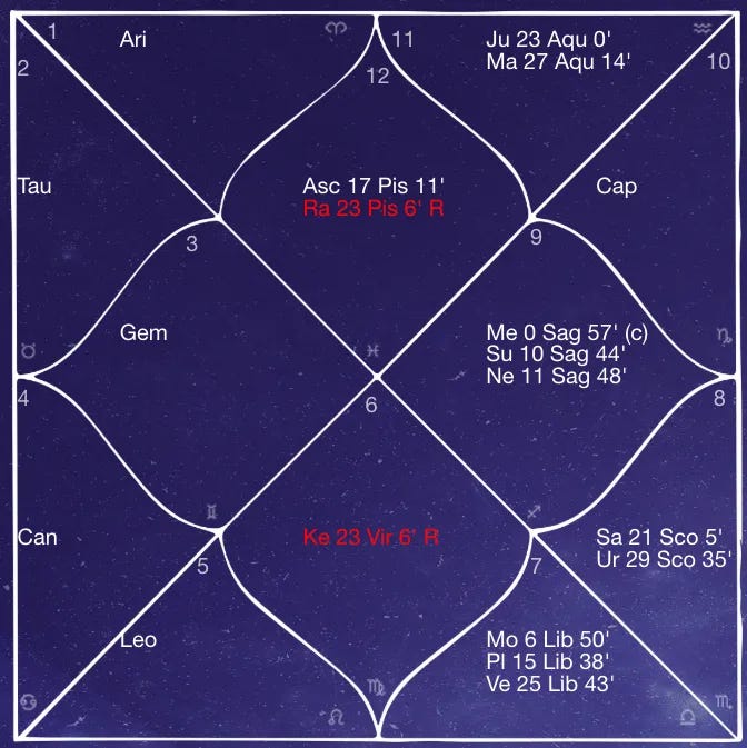 With the Moon in the 8th house, emotional depth runs high. This is a placement of transformation, inner excavation, and intimacy with the hidden layers of life. There can be an instinctive pull toward the mystical, psychological, or taboo. Combined with Swati’s airy nature, this points to someone who may intellectualize intensity, yet feel deeply in subtle, often unspoken ways.