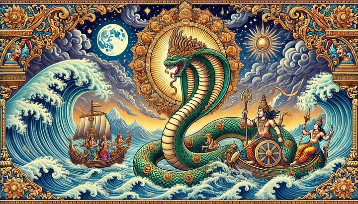 A key myth linked to Ashlesha is the story of Vasuki, the serpent king who played a central role in the churning of the cosmic ocean (Samudra Manthan). Vasuki allowed himself to be used as the rope in this cosmic event, enduring great strain to help retrieve the nectar of immortality. During the process, deadly poison emerged from the ocean, which Lord Shiva consumed to save the world. This tale illustrates the dual nature of Ashlesha: enduring emotional or karmic poison to ultimately achieve transformation and spiritual growth, much like how those with Ashlesha must navigate their intense emotions and challenges to unlock deeper wisdom.