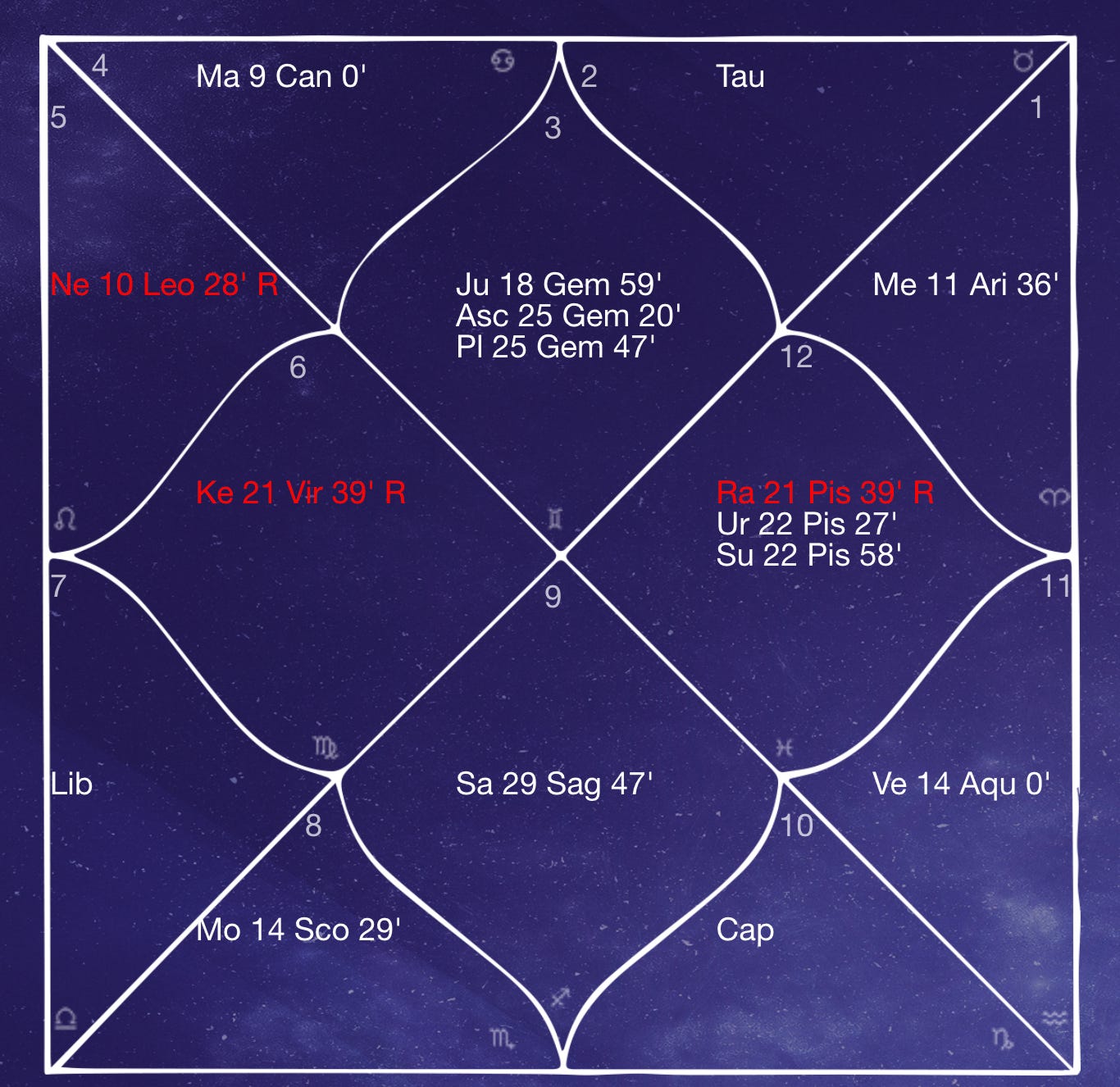This is an example of a chart with Anuradha Moon in the 6th House. This setup suggests someone who:
